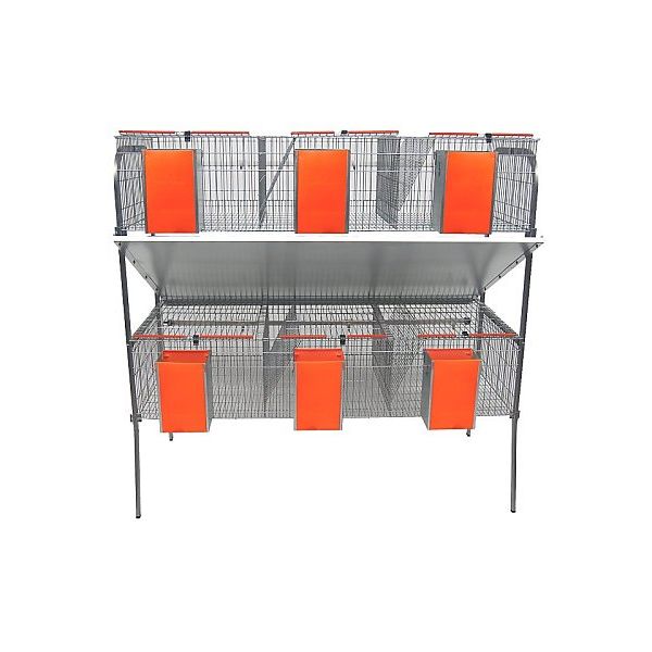 JAULA COM 2 PISOS E SEIS DIVISÕES, COM COMEDOURO DE DUAS BOCAS E BEBEDOURO DE CHUPETA, COM TUBO PVC