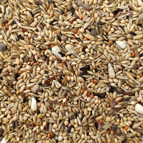 Composição: Alpista Canada (45%), Sementes Gramíneas (10%), Milho Alvo Amarelo, Milho Alvo Japonês, Cártamo, Milho Alvo Branco, Linhaça, Milho Alvo Vermelho, Cânhamo, Niger, Aveia Descascada, Trigo Serraceno.