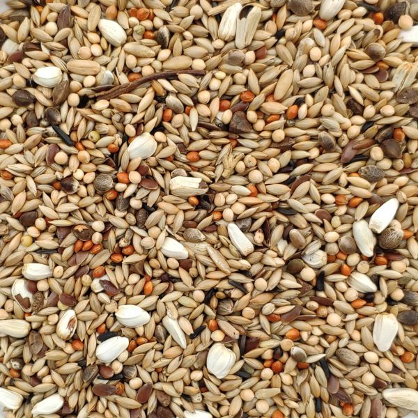 Composição: Alpista Canada (40%), Milho Alvo Amarelo, Cártamo; Milho Alvo Vermelho, Aveia Descascada, Cânhamo, Milho Alvo Branco, Trigo Sarraceno, Níger